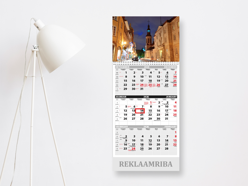 - Võimalus lisada 6cm reklaamriba kalendri allosas (lisatasu 0,40€/tk). Reklaamriba suurus on 297x60mm