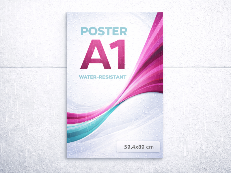 A1 formaadis plakatid, trükitud niiskuskindlale materjalile sise- ja välitingimustes kasutamiseks.