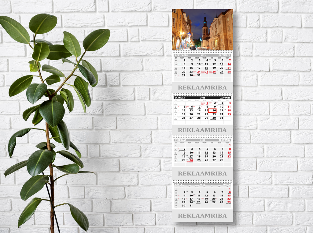 - Возможность добавить 6-сантиметровую рекламную полосу внизу календаря (дополнительная плата 0,40 € / шт.). Размер рекламной полосы 297x60 мм